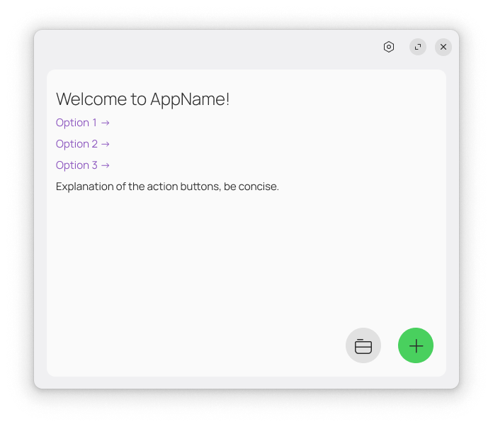 The Welcome Screen is reserved for apps that need to present options and actions before displaying the main UI, such as Text Editors, Image Editors, etc.