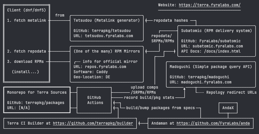 2. With .repo files. We provide .repo files at https://github.com/terrapkg/subatomic-repos (opens in a new tab).